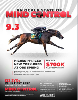 The first foal for multiple Grade 1 winner and popular second-year New York-based stallion Mind Control was believed to be born Thursday at Irish Hill Farm in Stillwater, N.Y. CLICK HEADLINES TO READ MORE